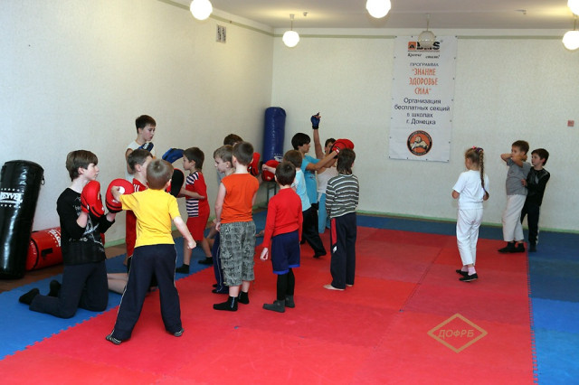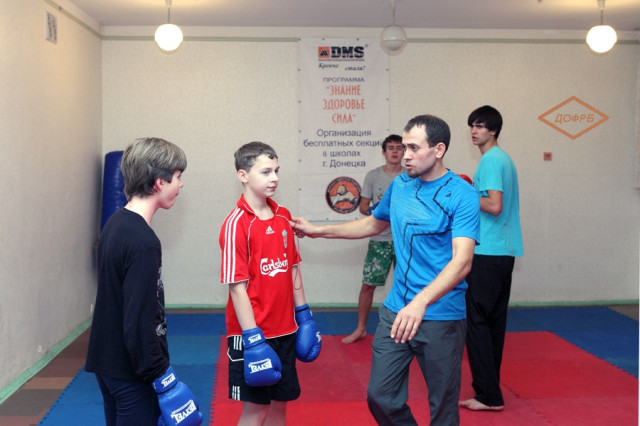 Донецкая областная федерация рукопашного боя с 2007 года открывает и обеспечивает работу школьных секций рукопашного боя. Именно тогда мы выступили с такой инициативой, которую поддержал Донецкий горсовет, что вылилось в программу “Знание, здоровье, сила”. Занятия в секциях проводятся бесплатно тренерами и действующими спортсменами федерации, в том числе чемпионами Украины, Европы, мира. Оснащение секций инвентарем и защитой обеспечивается за счет ДОФРБ и Корпорации DMS как партнера федерации.