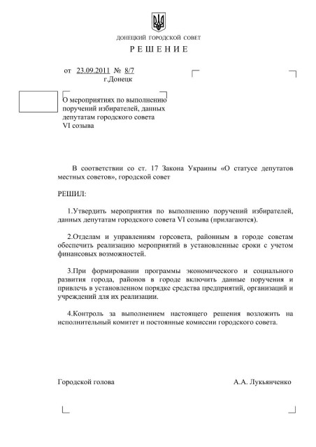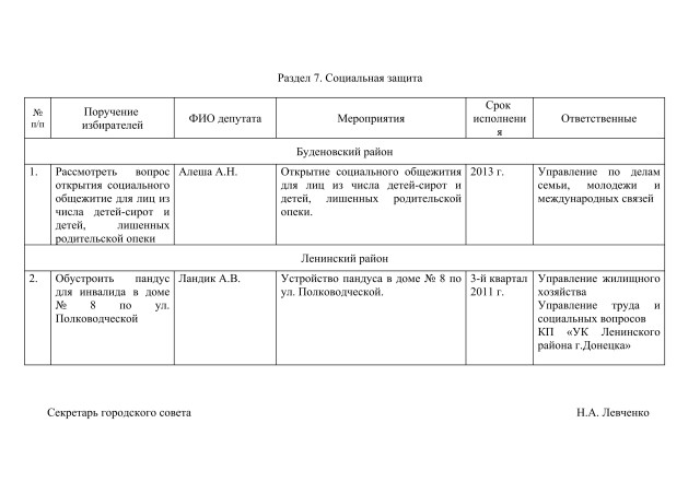 Прошедшая сессия Донецкого горсовета приняла решение о мероприятиях по выполнению поручений избирателей. В число этих поручений входит и открытие социального общежития для детей-сирот, получивших образование